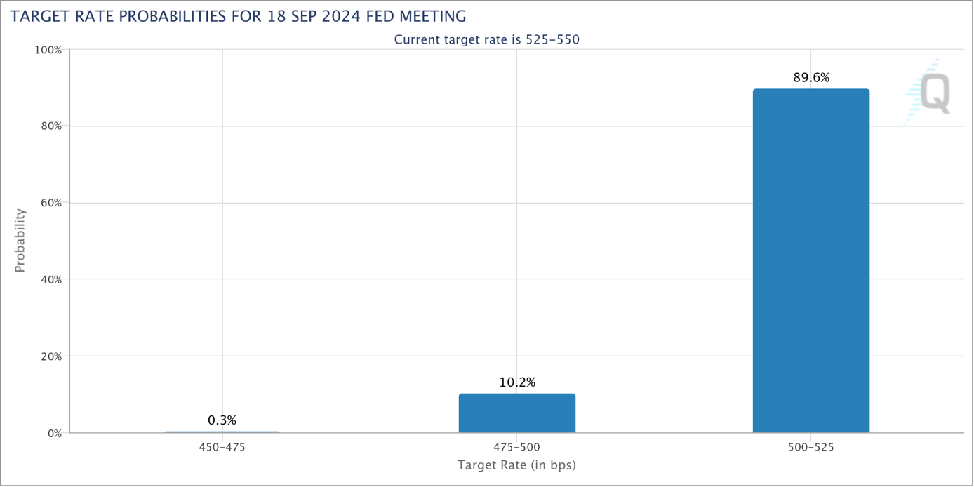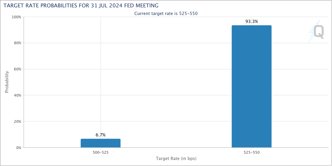 根据CME的FedWatch工具来看,人们预期七月不会降息,但之后每次例行会议都会降息。如果美联储未能降息三次,那么市场可能认为这是鹰派的表现,并可能引发看跌情绪。