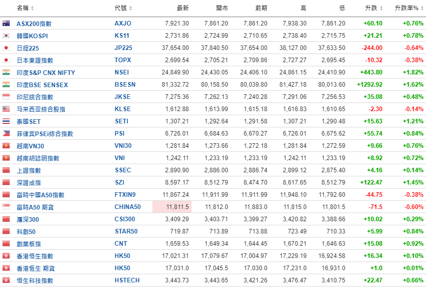 亚太股市多数上升。
