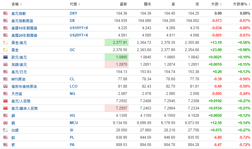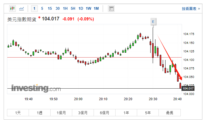 美元指数期货、美元指数在PCE数据公布后走低。