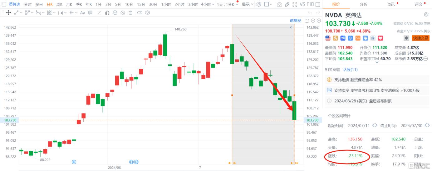 7月11日以来,这家芯片巨制造商的股价已经下跌了23%。不过年初至今,英伟达年内仍上涨了约109%。