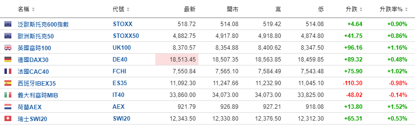 蔚来汽车(NYSE:NIO)(HK:9866)升1.6%,理想汽车(NASDAQ:LI)(HK:2015)升3.7%,小鹏汽车(NYSE:XPEV)(HK:9868)升3.8%。