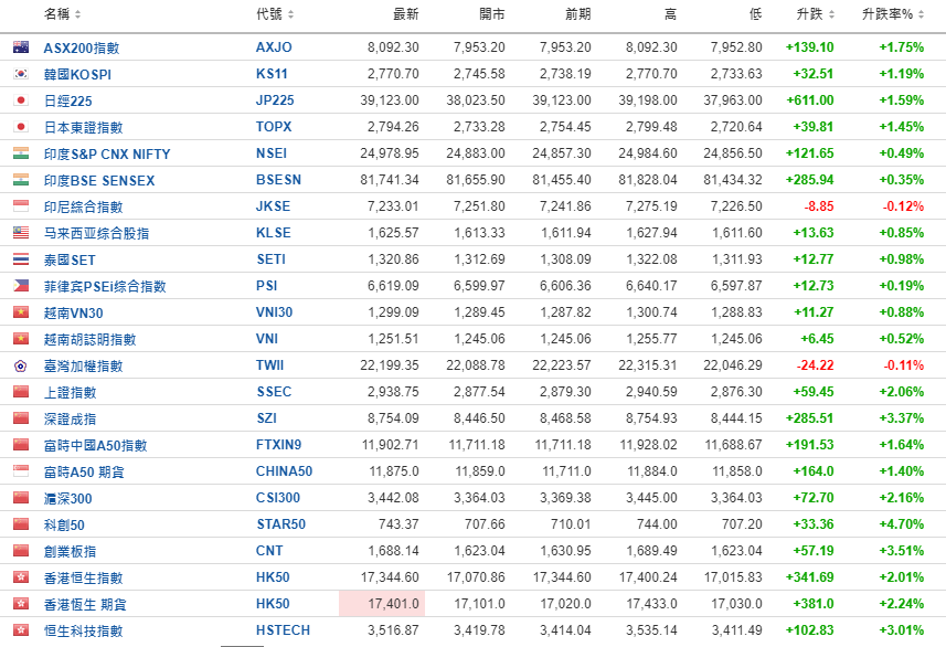百度(NASDAQ:BIDU)(HK:9888)升1.5%。网易(NASDAQ:NTES)(HK:9999)升1.9%。