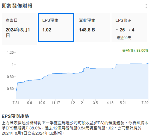 最近90天,华尔街26次上调亚马逊盈利预测,并预计今年全年亚马逊营收将大增超过50%,按此上InvestingPro查看完整业绩预测数据。