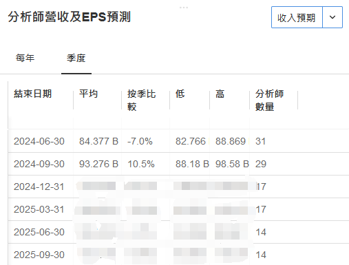 以下是分析师对苹果未来几个季度营收的预期。按此直达InvestingPro苹果财报页面,查看完整数据。