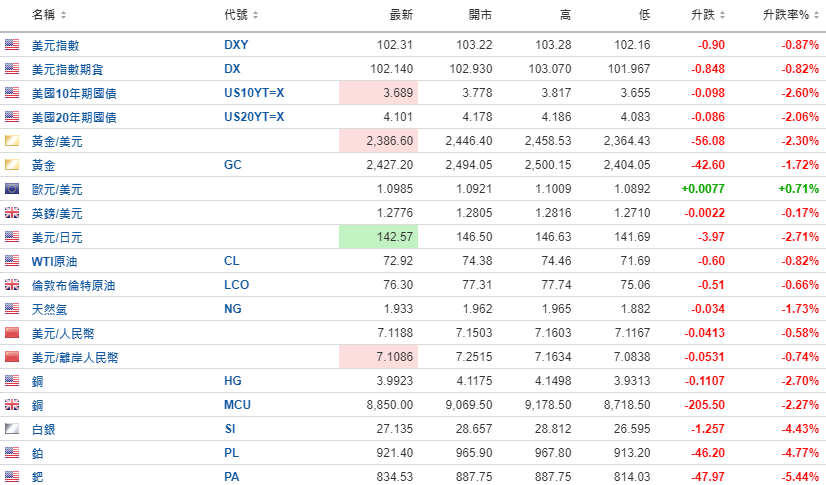 美元指数期货、美元指数重挫0.8%,向下逼近102。