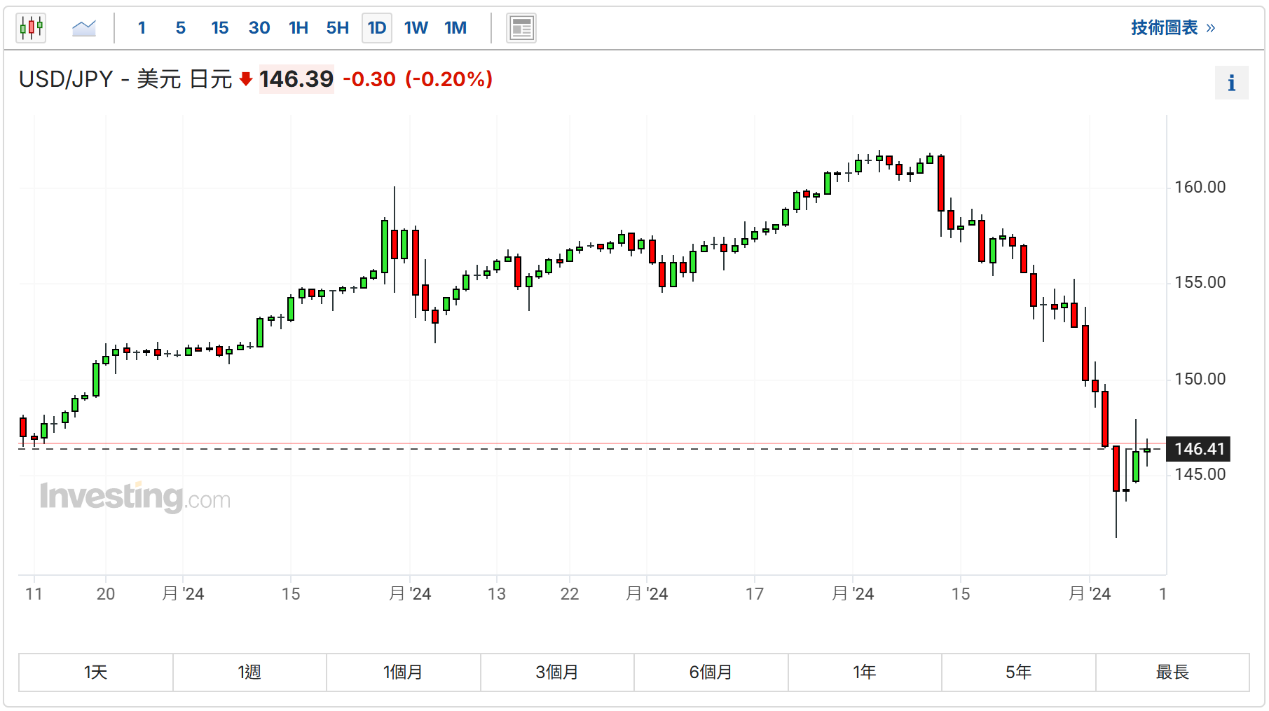 英为财情Investing.com -周四(8日),亚市早盘,美元兑日元跌0.2%,报146.39.。