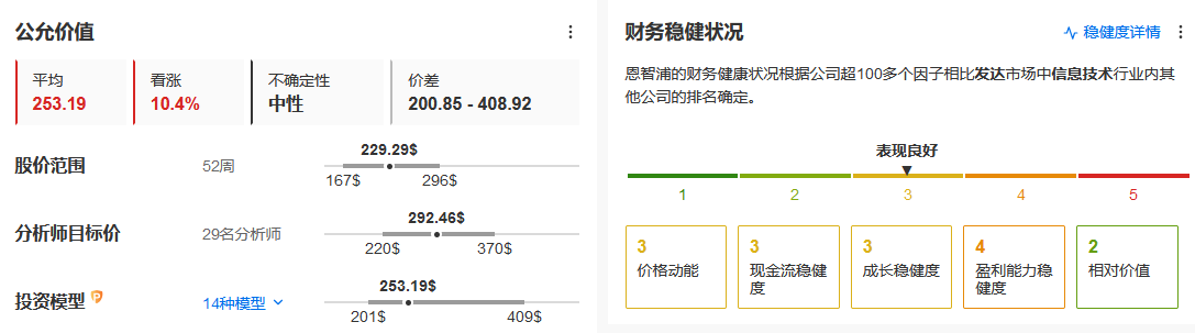 恩智浦公允价值及财务稳健度,来源:InvestingPro