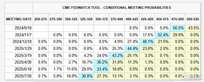 昨夜的数据公布后,市场降低了对9月降息50基点的押注。