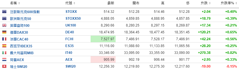 欧洲股市普升。