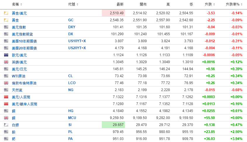 美元指数期货、美元指数基本持平。