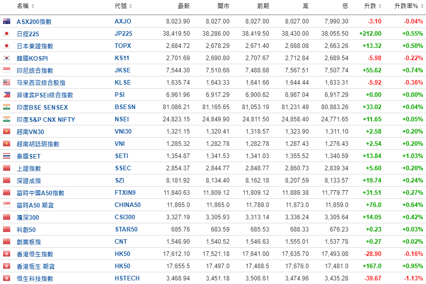 京东(NASDAQ:JD)(HK:9618)升1.8%,拼多多(NASDAQ:PDD)跌0.3%。