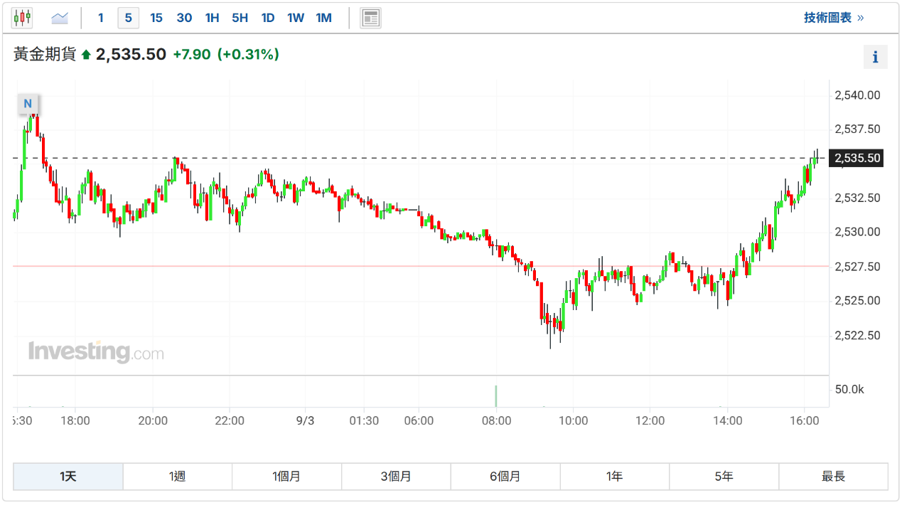 黄金期货日内探底回升现涨0.31%,报2535.5美元/盎司,现货黄金重返2500美元上方。高盛今日报告称,短期偏好黄金,属对冲地缘及金融风险理想工具,而美联储减息在即及欧央行持续买金都带来支持。该行维持金价明年目标每盎司2,700美元,并展开黄金长仓建议。