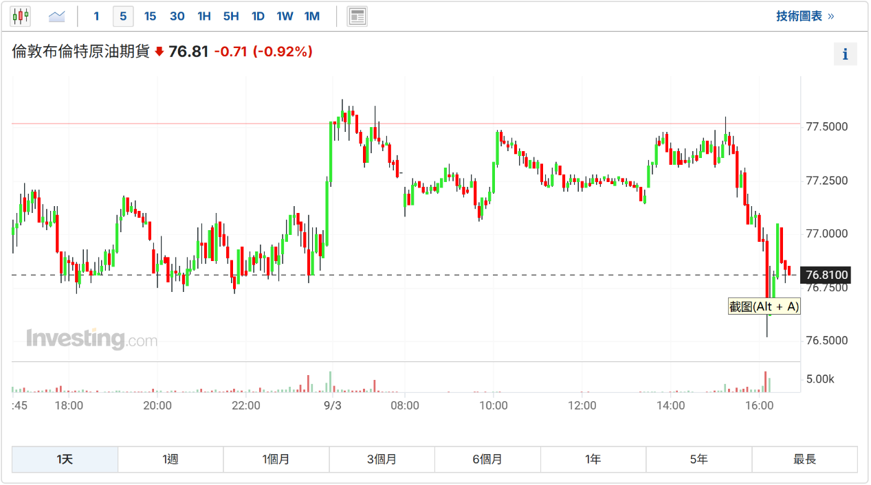 伦敦布伦特原油期货大幅走低现跌0.92%,报76.81美元/桶。WTI原油期货表现相对坚挺,微跌0.03%,报73.53美元/桶。原油期货价格走低反映了市场对需求前景的忧虑,而利比亚的石油出口中断事件更是加剧了市场的不安情绪。