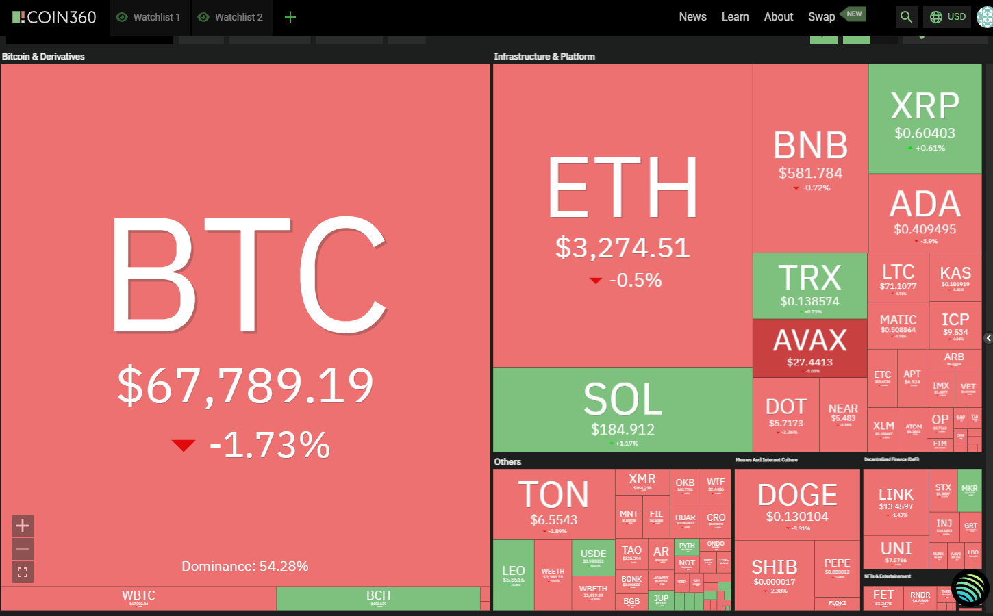 如果价格下跌并跌破 50 天简单移动平均线(63,422 美元),这种积极观点将在短期内失效。这可能会将价格拉低至心理支撑位 60,000 美元。