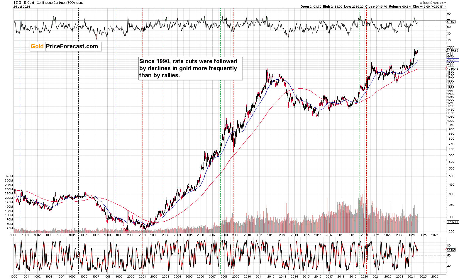 显然,降息并不一定会导致黄金、白银或矿业股上升——可能没有任何影响,或者可能导致价格下跌。