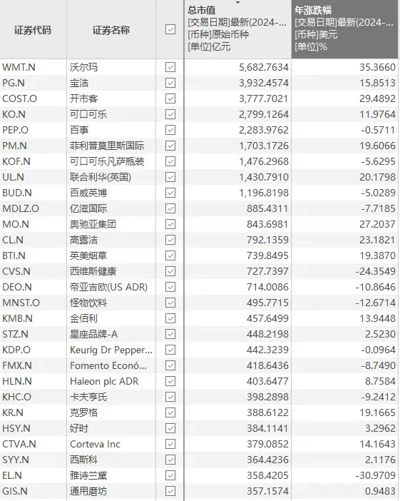 A股受此牵连新低,那美股呢?情况也好不到哪里去。在纳指和道指双双新高的背后,是众多食品饮料股近期的不断新低。头部大公司表现很差,表现突出的消费公司鹤立鸡群。