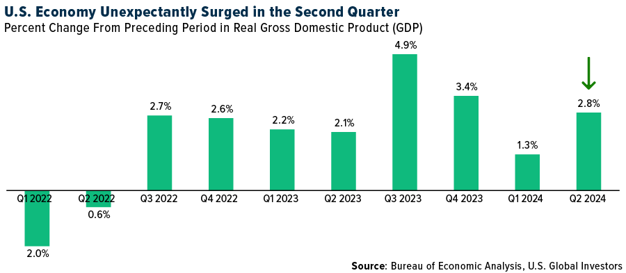 美国政治风云变幻之际,美国经济却发出了复杂的信号。一方面,第二季度国内生产总值(GDP)的增速达到了令人瞩目的2.8%,不仅超越了预期,增速还较第一季度翻倍。