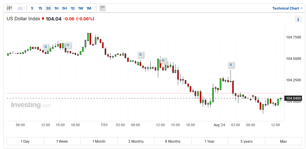 美元指数30分钟线图,来源:英为财情Investing.com