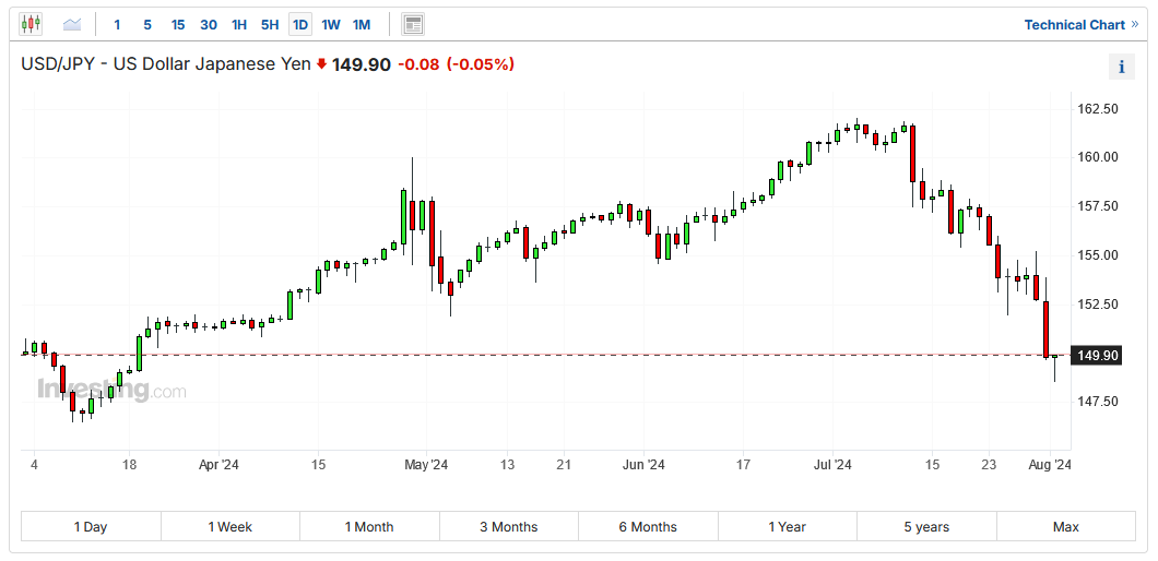 日本利率升高与美国利率下降的前景对日元构成利好,后者在过去两年表现不佳。然而,日元的强势也逆转了广泛的套利交易。