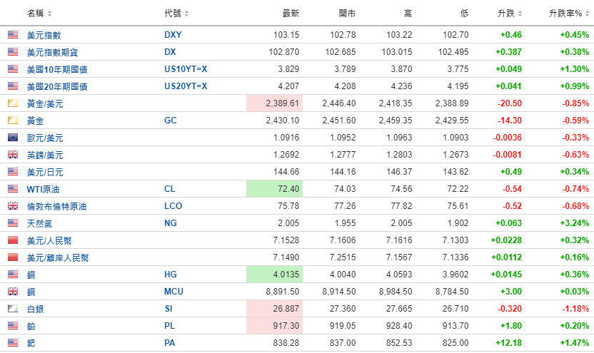 美元指数回升至103关口上方。