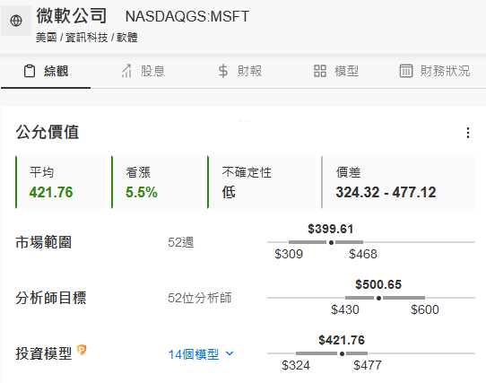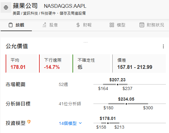 细心的读者可能发现,图表中有两个公允价值,一个是按分析师目标价计算的,一个是InvestingPro估值模型计算的。