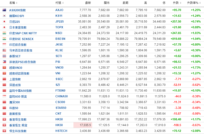 蔚来汽车(NYSE:NIO)(HK:9866)跌1%,理想汽车(NASDAQ:LI)(HK:2015)升1%,小鹏汽车(NYSE:XPEV)(HK:9868)跌0.3%。
