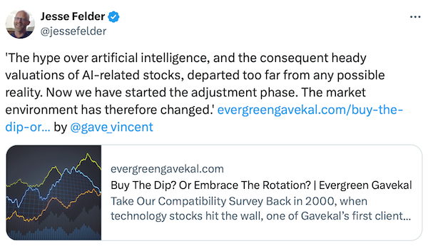 上图贴文翻译:人工智能的炒作以及随之而来的AI相关股票的高估值,已经远远偏离了现实。现在,我们已经开始进入调整阶段。因此,市场环境已经发生了变化。